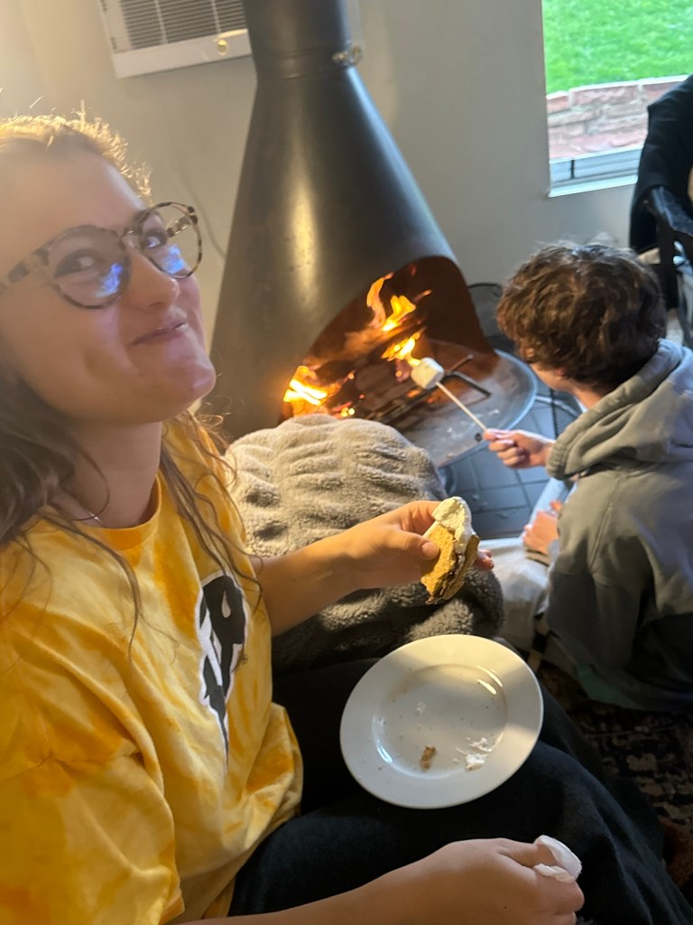 As we indulged in more snacks and treats through the second quarter, the Buffs kept tightening their grip on the game. A Shedeur touchdown just before halftime left us feeling like we were dreaming, as Colorado led 28-7 heading into the break. It was at this point that we gathered around the fire, reveling in our team’s success and indulging in a surprising but delightful game-day dessert: S’mores.
